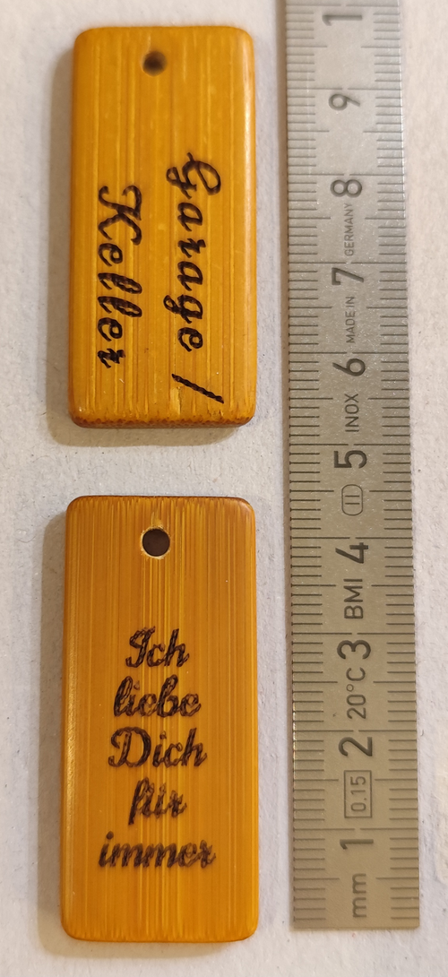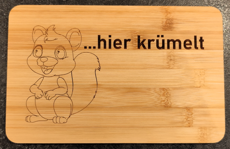 Momentan lassen sich bereits einige Materialien wunderbar bearbeiten. In Zukunft plane ich eine Neuanschaffung, dass es mir möglich sein wird auch Projekte auf transparentem Acrylglas zu verwirklichen.